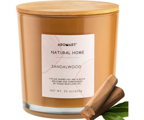 AROMART 3 Wick Large Scented Candles 22 Oz ,Sandalwood Aromatherapy Candles for Home Scented, Soy Candles with 8% Essential Oils ,Long Burning,Soy Wax Candles Gifts for Women Men