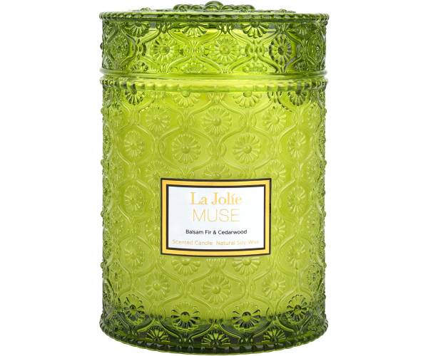 Balsam Fir & Cedarwood Scented Candle, Holiday Candle Gift, Wood Wicked Candle for Home, Large Glass Jar Candle, Long Burning Time, 19.4 Oz