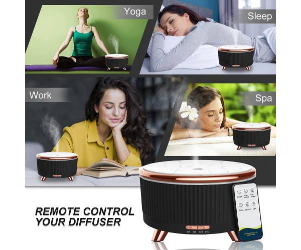 - 【Essential Oils Diffuser With 7 Color Light & Remote】The essential oil diffuser for large room comes with remote control and allow you change the Misting/Lighting/Timer mode for the essential mist diffuser. Aromatherapy oil diffuser large room provide 7 LED colored light options, The color can be cycled through or set it to one fixed color. The soft light and aromatherapy diffusers essential mist creates romantic atmosphere which help you relax your tired body and mind after a long day of work