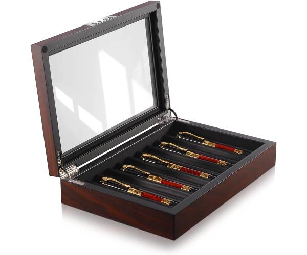 Pen Cases for Adults, Wooden Pen Display Box, 10 Luxury Pen Holder with Top Glass Window Storage Box Gift Pen Display Case for Collectibles Large capacity