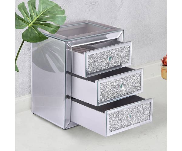 - Hoose excellent materials: Each drawer is decorated with shiny broken diamonds, mirror glass material is light luxury style.( product size: 8.8″x7.1″x10.4″)