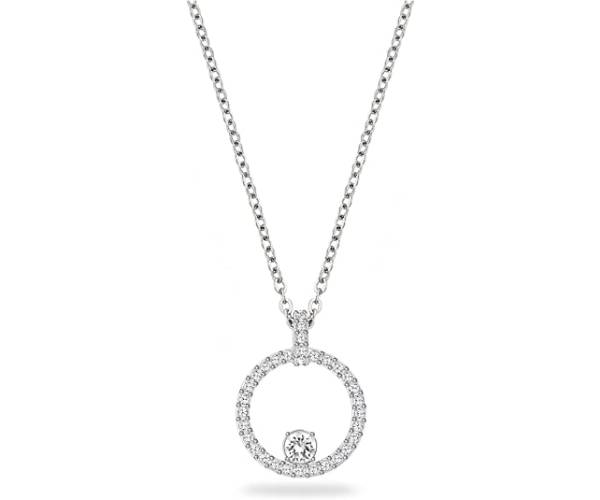 - Simple and elegant: This rhodium plated necklace combines the precision and quality of sparkling Swarovski crystals with a subtle circular silhouette, for a delicate accessory for any occasion